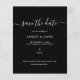 Foto boho do guião gráfico salvam o folheto da data com seus nomes, data do casamento, localização e site do casamento em branco elegante, escrita manual, caligrafia e tipografia moderna em um fundo preto. Basta adicionar seus detalhes pessoais e sua foto favorita! Desenvolvido exclusivamente para você pelo Happy Dolphin Studio. Se precisar de ajuda ou produtos correspondentes, entre em contato conosco através do bate-papo da loja. Estamos felizes em ajudá-lo a fazer seu casamento o dia mais bonito!