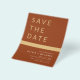 Boho Terracotta, Elegante Boho Terracotta, Laranja queimado e Cartões salve a data Dourados. Os Cartões salve a data contêm uma moderna tipografia cursiva escrita escrita escrita escrita escrita escrita escrita escrita que é elegante, simples e moderna a ser usada depois da simples celebração do dia de casamento minimalista.