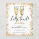Este é um Convite de festas elegante e na moda num folheto de papel. O design apresenta um par de óculos de champanhe de aquarela, uma borda de ouro e uma chamada para seus convidados para comemorar o amanhecer do novo ano com "Vamos brindar!" em uma letra moderna. Atualize facilmente os detalhes da parte na placa usando o modelo fornecido. Entre em contato com o designer para fazer perguntas ou problemas relacionados a este design ou a produtos correspondentes.