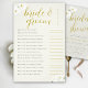 Um chá de panela com um tema de noiva e trivialidade nobre. Personalize (ou deixe como estão) uma lista de coisas sobre o casal, depois entregue-as aos seus convidados para dizer quem disse ou fez isso, para uma atividade divertida para o seu chá de panela. Para um chá de panela com tema das orquídeas brancas, com dois ramos de orquídeas brancas desenhadas à mão, tipografia moderna e caligrafia moderna com florescimentos femininos e elegantes. Chic e moderno, elegante e eterno, esta design (com convites e outros itens) é adorável para uma noiva moderna que ama orquídeas brancas.