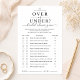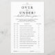 Add laughter and friendly competition to your celebration with this elegant Over or Under bridal shower game card. Guests guess whether the correct answer is over or under the number listed, then compare responses to see who knows the bride and couple best.