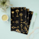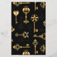 Padrão contínuo de chaves antigas, douradas e em silhueta em fundo preto.