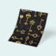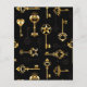 Padrão perfeito de chaves antigas, douradas e silhuetas em fundo preto.