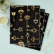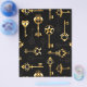 Padrão perfeito de chaves antigas, douradas e silhuetas em fundo preto.
