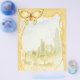 Uma linda borboleta Ouro fica no topo desta página aparada em designs de ouro abstrato com fundo cênico. Estas páginas são perfeitas para 3 toques.
