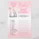 Entra nos teus hóspedes com estes adoráveis cartões de jogos de chá de fraldas com tema de elefante; WORD SCRAMBLE. Mamães de desenho animado e elefante bebê com balões cardíacos; cor rosa e branca. Perfeito para uma festa de bebês. Obter itens correspondentes! 1. LULLABY 2. COBERTO 3. ROLADOR 4. EMBALAGEM 5. RÁCIO 6. FRALDA 7. FRASCO 8. BEBÊ ESPERA 9. TERMÔMETRO 10. BANCO DO CARRO 11. CRIB 12. FÓRMULA