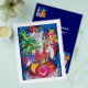 Pintura colorida, branca e artística em acrílico com ornamentos florais, plantas de inverno, brinquedos de bagas ocas e balões.