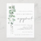 Convite para Festa de noivado de Script Eucalyptus PAPER. Um alternativo PAPER (não cartão) com valor de excelente SEM ENVELOPES com tamanho menor de 4,5" x 5,6" e a um preço orçamentário. (envelopes A6 padrão são o tamanho mais próximo ao ajustado). Estilo moderno minimalista com este design botânico, com folhagem de aquarela fluindo para baixo no lado esquerdo e texto para a direita. Um script manuscrito definido para o Noivado e o resto do texto que você pode personalizar facilmente.