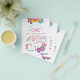 Um alternativo PAPER (não cartão) com valor de excelente SEM ENVELOPES com tamanho menor de 4,5" x 5,6" e a um preço orçamentário. (envelopes A6 padrão são o tamanho mais próximo ao ajustado). Porque quando não se pode juntar para celebrar pessoalmente, uma festa online é a próxima melhor coisa. Aqui está um design de um monocórnio fofo para a Primeira Festa de aniversário Virtual de sua garotinha, junto com florais simplistas coloridos em tons de rosa, cor-de-rosa e amarelo. Todo o texto pode ser facilmente personalizado para seus próprios detalhes. No verso, o fundo é branco com estrelas lacrimogêneas. Você pode fazer outras alterações se desejar por meio da opção personalizar mais, para digitar estilos e cores, e também as cores de fundo.