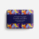 Folha de embrulho de sabão com um design de aquarela abstrato azul e laranja.