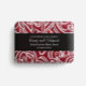 Uma folha de acondicionamento de sabão floral com um desenho abstrato vermelho floral.