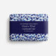 Uma folha de embalagem de sabão com um padrão de verificação azul-abstrato.