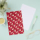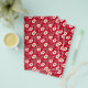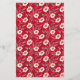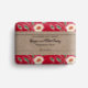 Folha de embrulho de sabão que apresenta um padrão alegre com flores brancas sobre fundo vermelho.