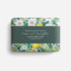 Folha de embrulho de sabão com um design com limões amarelos e flores brancas.