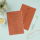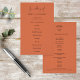 Texto Elegante Do Orçamento Programa De Casamento Terracotta. Um alternativo PAPER (não cartão) de valor do excelente SEM ENVELOPES e a um preço orçamentário. Um design típico para os seus programas de casamento. O cabeçalho principal está em um script de estilo de escrita manual de conjunto elegante e o resto do texto que você pode personalizar facilmente. Você pode alterar as cores do texto e do plano de fundo se quiser combinar o tema da cor do casamento através da opção Personalizar Mais, assim como de outras opções que você precisar. Se precisar de assistência para a edição deste design, por favor, envie-me uma mensagem.