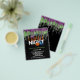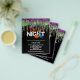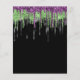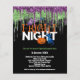 Convite para a Festa de Halloween Fright Night Glitter Drip. Uma ótima opção em PAPEL (não cartão) sem envelopes, no tamanho menor 4,5” x 5,6” e a um preço acessível. (Envelopes padrão A6 são o tamanho mais próximo para caber). Convide seus amigos para uma Noite de Halloween Assustadora e uma noite de Travessuras com este convite sinistro com gotas de glitter em verde e roxo nas bordas superiores e motivos de abóbora, gato, fantasma e morcego. O texto com os detalhes pode ser facilmente personalizado, e você também pode alterar a cor deste texto e as cores de fundo na frente e no verso através da opção "Clique para Personalizar Mais", se desejar.