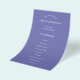 Programa de Casamento Azul de Texto Simples. Uma ótima opção em PAPEL (não cartão) sem ENVELOPES e a um preço acessível. Um design tipográfico simples e elegante com texto preto sobre violeta azul-pervinca para seus programas de casamento, totalmente personalizável. O texto, que você pode facilmente personalizar, está centralizado em ambos os lados. Você pode alterar as cores do texto e do fundo se desejar combinar com o tema de cores do seu casamento através da opção "Personalizar Mais", além de outras edições que possa precisar. Se precisar de ajuda com a edição deste design, por favor me envie uma mensagem.