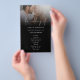 PAPEL | Script Photo Overlay Program Black. Um alternativo PAPER (não cartão) do preço de orçamento do valor do excelente. Um design elegante com sua foto na borda superior atrás de uma camada de tonalidade graduada com o texto parcialmente sobreposto na parte superior da sua imagem na parte inferior. O cabeçalho principal está em um script na moda set e o resto do texto que você pode personalizar facilmente. Você pode alterar as cores do texto e do plano de fundo se quiser combinar o tema da cor do casamento através da opção Personalizar Mais, assim como de outras opções que você precisar. Se precisar de assistência para a edição deste design, por favor, envie-me uma mensagem.