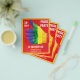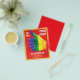 Orgulho do evento. Mão nas cores da bandeira LGBT em fundo vermelho