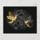 Joias pretas e douradas, beija-flores, sobre fundo de cinza decorado com plantas. Pássaros joalharia. Pássaro ouro. Pássaro Dourado.