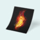 Pena de pavão brilhante feita de fogo e chamas sobre fundo negro.