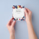 Personalize e adicione o logotipo, o nome, o endereço, o texto, o seu próprio código QR à sua conta instagram. Fundo branco, decorado com balões em cores patrióticas nos EUA, vermelho, azul e branco com listras e estrelas.