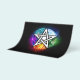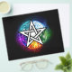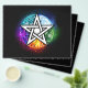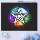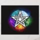 Pentagrama luminoso desenhado artificialmente com cinco elementos mágicos, água, terra, fogo, astral, ar sobre fundo negro. Pentagrama Wiccan. Wicca