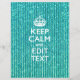 Seu personalizado "Fique Calmo" dizendo em uma vibrante decoração turquesa. Um estilo "Manter Calmo" personalizado dizendo em um presente gentil. Humorístico ou caprichoso experimente suas palavras criativas em duas linhas editáveis de texto. Lembre-se de usar letras CAPITAL para obter melhores resultados. Designs de bordados estão disponíveis em uma ampla seleção de opções populares de cor. Use o link "Perguntar a este Designer" para entrar em contato conosco com suas solicitações especiais de design ou para obter assistência com suas necessidades de personalização.