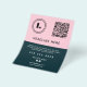 Professional minimalism in pink and dark teal color with logo and QR code. Contrast duotone makes ideal standout and get noticed easily. Perfect for promotions, special offers, boutique, salon and much more.