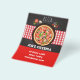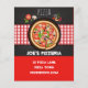 Um panfleto de tendência adequado para um anúncio de caminhões de comida de pizza ou restaurante ao estilo pizza italiano, com ilustração de pizza com toalha de mesa de gingham vermelha e branca com texto personalizável. A cor de fundo é personalizável.