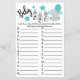 Cartão de Jogo de Chá de fraldas Blue Balloon Elephant Baby ABC. Como jogar: Anote um item/termo relacionado ao bebê que começa com cada letra. O primeiro convidado a terminar a lista ganha!