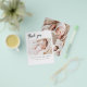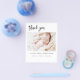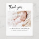 Budget Simple Baby Obrigado Elegante Colagem de Fotos que tem uma foto na frente e 4 Fotos na parte de trás. As cartas contêm uma tipografia cursiva escrita moderna, escrita à mão, que é elegante, simples e moderna para ser usada por um bebê recém-nascido ou por uma menina enviada pela mãe e pelo pai da criança criança para a família e os amigos.