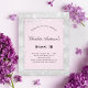 Imagem metálica prateada escura e fundo cor-de-rosa esbranquiçado decorado com pó cintilante prateado sujo. Personalize e adicione um nome e detalhes da parte. Escrito preto, elegante.