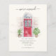 Uma mudança de endereço no cartão de anúncio do orçamento para amigos para a família saber onde você está e onde a próxima festa de limpeza de casa provavelmente estará. O design apresenta uma porta frontal de cor d'água vermelha e um número de casa que você pode alterar clicando no botão "Personalizar" acima. Adicione uma mensagem especial e seus novos detalhes de endereço na frente da placa para substituir os textos de marcadores de posição na tipografia moderna e de script.