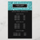 Glamoroso e elegante, o design do folheto exibe seus serviços, lista de preços ou informações comerciais sobre uma imagem digital de um padrão de brilho turquesa. Sobreposição de faixa preta.