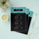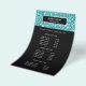 Glamoroso e sofisticado, o design do folheto exibe seus serviços, lista de preços ou informações comerciais sobre uma imagem digital de um padrão brilhante turquesa. Sobreposição de faixa preta.