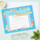 O Folheto De Certificados Da Criança Apresenta Um Fundo Azul Com Um Padrão De Linha Onda, Estrelas Coloridas De Pastel E Tipografia Cursiva. Personalize Para O Seu Gosto.