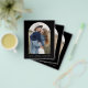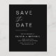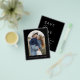 Cartões salve a data Pretos de Casamento de Orçamento que têm uma foto na frente. Os Cartões salve a data contêm uma moderna tipografia cursiva escrita escrita escrita escrita escrita escrita escrita escrita que é elegante, simples e moderna a ser usada depois da simples celebração do dia de casamento minimalista.