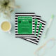 Design de graduação do esporte de orçamento com um fundo retangular verde arredondado sobre um fundo listrado preto e branco com texto e acentos a preto e branco. Duas estrelas criaram bandeiras em ambos os lados das palavras "Festa de formatura" servem de bandeiras para a sua ocasião. Criado por Designs Holiday Hearts para HHGraduation.