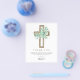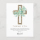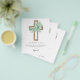 Cartões de agradecimento da Primeira Comunhão Econômica com flores verdes de eucalipto, menino, cruz botânica, folhagens e aquarela religiosa.