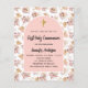 Por favor, note que este convite está no papel de folheto e é muito fino. Os envelopes não estão incluídos. Para convites mais espessos (mesmo design) visite nossa loja. Um quadro de arco sobre um padrão de grama pampas e flores cor-de-rosa e uma cruz ouro. Personalize e adicione um nome e detalhes.