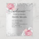 Por favor, note que este programa está no papel folheto e muito fino. Os envelopes não estão incluídos. Para programas mais espessos (mesmo design) visite nossa loja. Um fundo de olhar mal prateado. Decorado com faíscas prateadas falsas e flores cor-de-rosa e branca, rosas. Se precisar de mais espaço para texto, você pode remover as flores no canto direito.