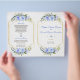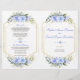 Flyer Programa de Casamento de Frame Dourado Floral Azul