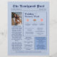 Blue Elegant Newspaper Wedding Program: Torne seu grande dia inesquecível com este elegante programa de casamento de jornal. Apresentando um design azul único e moderno, este programa oferece uma reviravolta criativa em artigos tradicionais de núpcias. Perfeito para casais que buscam compartilhar um toque pessoal e divertido, inclui tudo, desde uma cronologia detalhada da cerimônia até fatos divertidos sobre o casal. Este programa de casamento de jornal será uma lembrança memorável para seus convidados, mostrando sua história de amor de uma forma que seja tão na moda quanto significativa.