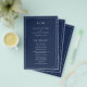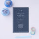 Simples marinho azul orçamento Programa de Casamento com um design moderno, mas elegante, com seu monograma de duas letras no topo e seus detalhes cercados por uma fina borda. As fontes e cores podem ser alteradas na ferramenta de edição de design. A frente tem sua ordem de cerimônia e a parte de trás tem sua festa de casamento e obrigado. Um design chic e na moda que é excelente para um casal minimalista. Estes programas de casamento baratos são impressos em folhas de papel para uma opção econômica.