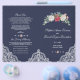 Design elegante, romântico, com buquês florais de cor aquosa (flores vermelhas e brancas, bagas sagradas, folhagem de eucalipto unido), um divisor floral, tudo sobre fundo azul-da-meia-noite (pode ser mudado). Use Personalizar este modelo para adicionar suas informações. Para ver os itens correspondentes, visite minha Coleção de Feriados Novos de inverno.