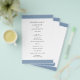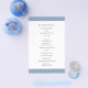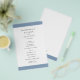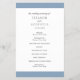 O moderno voador do programa de casamento azul empoeirado com uma banda ousada no topo e no fundo. Seus nomes estão em uma fonte serif clássica e seus detalhes estão em uma combinação de uma fonte sans serif moderna e um script elegante. A parte de trás tem uma banda ao longo do fundo junto com o seu monograma. Esta simples e mínima design com a redação tradicional é excelente para um casamento formal.