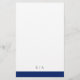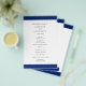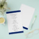 O programa de casamento do marinho azul moderno com uma banda ousada no topo e no fundo. Seus nomes estão em uma fonte serif clássica e seus detalhes estão em uma combinação de uma fonte sans serif moderna e um script elegante. A parte de trás tem uma banda ao longo do fundo junto com o seu monograma. Esta simples e mínima design com a redação tradicional é excelente para um casamento formal.