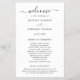 Folheto simples do programa de casamento orçamentário com um design limpo e minimalista que apresenta um toque elegante com a palavra "bem-vindo" em roteiro com supressões. Um design preto e branco moderno que se coordena lindamente com qualquer estilo de casamento. Estes programas de casamento baratos são impressos em folhas de papel para uma opção econômica.