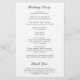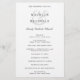 O programa de casamento Elegante em preto e branco (impresso no folheto), com um design simples e mínimo com um grande e grande suporte atrás dos nomes da noiva e do noivo em uma fonte serif tradicional. Uma escolha clássica que é perfeita para um casamento formal.